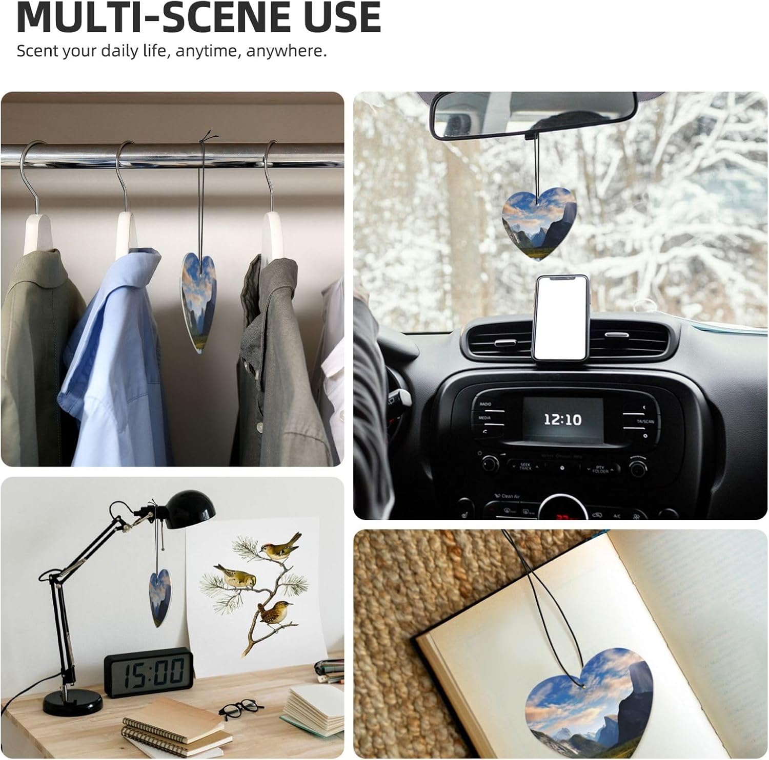 unobstructed vision: this National Park rearview mirror scented fresheners doesn't obstruct your vision while driving, ensuring a safe and comfortable journey every time.easy hang: we've included a convenient rope for hanging, making it super easy to attach this christmas air freshener wherever you prefer. No fuss, no mess - just hang and enjoy the fragrance.incredible package deal: this rearview mirror pendant aromatherapy tablets package includes 6 pieces in 6 captivating designs and 1 refreshing scents (lavender). Experience a variety of delightful fragrances that will keep your surroundings smelling wonderful throughout the day.environmental protection: the car air fresheners for women smell can last for about 1-2 weeks. When the smell fades, you can add your favorite perfume. Continue to use, reusable6 pcs included: you will receive 5 individual shoe cabinet fresheners, each in its own package; enjoy consistent scents for nearly a year, or share them with your friends or families